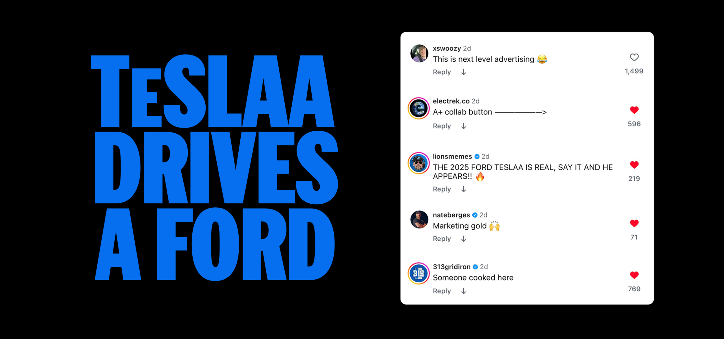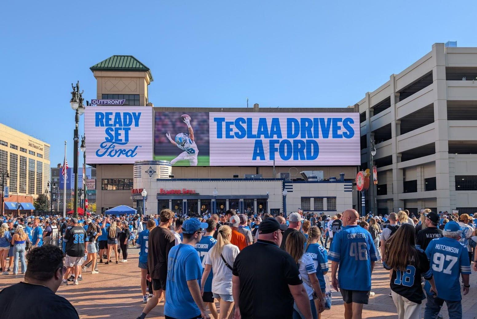 By Sunday, “TeSlaa Drives a Ford” had overtaken Detroit’s streets, feeds, and stadium.